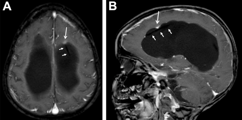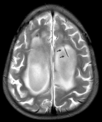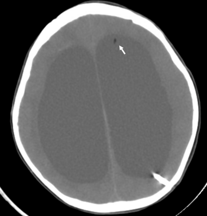 案例分享 5岁女童脑脊液感染案例 感染是脑室分流术最可怕的并发症,因为它会增加患者智力障碍和死亡的风险。脑室内异物可能代表感染的病灶。导管碎片和骨碎屑是脑室中最常见的异物。在这里报告了一例 5 岁女孩脑室内骨蜡导致持续性脑脊液感染的病例。 图1. 轴向平面的计算机断层扫描。异物表现为黑点(箭头) 该患者2岁时诊断为小脑毛细胞型星形细胞瘤,2012年11月经枕下入路切除肿瘤。术后出现急性脑积水,行右额叶钻孔内镜下第三脑室引流术,该手术失败一周后改为脑室-腹腔分流术。7个月后发生表皮葡萄球菌引起的脑脊液感染,分流管被移除,置入右额叶外引流管,期间多次更换并调整位置,直至脑脊液无感染。随后两年内,患者反复出现分流管相关感染,包括腹膜炎及心内膜炎,期间置入脑室-心房分流管。每次感染均通过移除分流管及外引流治疗,直至脑脊液培养阴性。所有感染病原均为表皮葡萄球菌,治疗过程复杂且反复发作。 2015年6月,患者入我科,表现为严重神经发育迟缓、无动性缄默症及痉挛性四肢瘫痪,伴有1个月呕吐和低热。行分流椎穿刺,脑脊液培养显示表皮链球菌阳性。分流器被外部分流器替换,并开始抗生素治疗。因脑脊液持续未清除感染,21天内外部分流器更换两次。期间对患者所有神经影像学资料进行了详细评估。自 2014 年 1 月以来进行的所有扫描中,轴向 CT 扫描中出现低密度斑点(图1)。 在左额角顶部发现轴向MRI T1 加权和 T2 加权 (图 2 和 3)的低信号(图 4)。在矢状面影像上,该病灶呈现为一条线状结构(类似血管或小型脑室导管)。神经放射科医师对其解读不一,CT上被认为是气体,MRI上则被视为小型室管膜血管,或与脑室导管混淆。2015年6月脑脊液感染活动期行增强MRI检查,显示该黑色点对应的室管膜表面出现强化(见图3)。怀疑存在异物,遂通过既往左额叶钻孔行内镜检查。于左侧侧脑室额角发现一段长约2厘米、直径数毫米的骨蜡碎片。该碎片仅松散附着于室管膜表面,使用活检钳轻松取出(见图5)。该骨蜡碎片送实验室进行微生物学检测,结果培养出表皮葡萄球菌。经过两周的外引流及抗生素治疗后,脑脊液感染清除,随后重新置入脑室-腹腔分流管,未再发生感染。 图2. 轴向平面中的 T2 加权磁共振成像。箭头表示骨蜡碎片,它显示为流动空隙 图3. 轴向 (A) 和矢状面 (B) 的对比增强 T1 加权磁共振成像。小箭头表示流动空隙(骨蜡碎片),大箭头表示室管膜面向骨蜡碎片的增强(室管膜炎) 图4. 2014 年 1 月进行的计算机断层扫描,其中黑点(箭头)也很明显 图5. 左侧脑室骨蜡碎片的术中内窥镜视图 本例中,脑室内骨蜡异物误诊持续时间至少达一年,神经放射学诊断极为困难。已有少数文献描述骨蜡的影像学表现,强调其与气体的相似性。Hadeishi等报道了7例骨蜡堵塞乙状窦的病例,影像上显示窦内低密度肿块,其密度值介于脂肪的低衰减与水的中间衰减之间,范围为−34至−79 HU。Stein等描述了一例胸椎手术后因骨蜡碎片引发急性截瘫的病例,患者接受了MRI评估。骨蜡在T1加权和T2加权影像上表现为信号缺失区。这种信号缺失是由于骨蜡的半结晶固体性质所致。该特性是所有结晶材料的典型表现,类似于水形成冰晶时的情况。MRI上的信号缺失区既可能由术后残留气体引起,也可能是手术器械产生的伪影所致。气体因质子密度低,在MRI上产生信号缺失;而手术器械同样会引起信号缺失,但可通过伪影的形态特征与骨蜡加以区分。 CT检查应能更准确地区分气体与骨蜡;采用适当的骨窗进行回顾性观察尤为重要,因为仅在软组织窗下,气体与骨蜡的衰减值可能表现相同。 分流系统感染是脑室分流术中最严重的并发症之一,尤其在儿童和老年患者中,感染可显著增加智力障碍和死亡风险。外科医生应高度重视此类并发症,采取一切可行措施防止手术材料自钻孔部位脱落进入脑室腔内,或应用可吸收材料,以降低感染及其他相关风险。 Spennato, P., et al. Intraventricular Bone Wax as Cause of Recurrent Cerebrospinal Fluid Infection: A Neuroradiologic Pitfall. World Neurosurgery, 2016. 88: p. 690.e7–690.e9. END 文稿 | 付晴雨 排版 | 雷嘉琪 审核 | 贾光耀